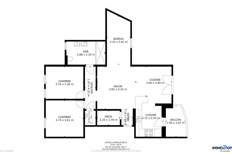 Ce bien s’étend sur une surface utile de 100m2 et est composé de :