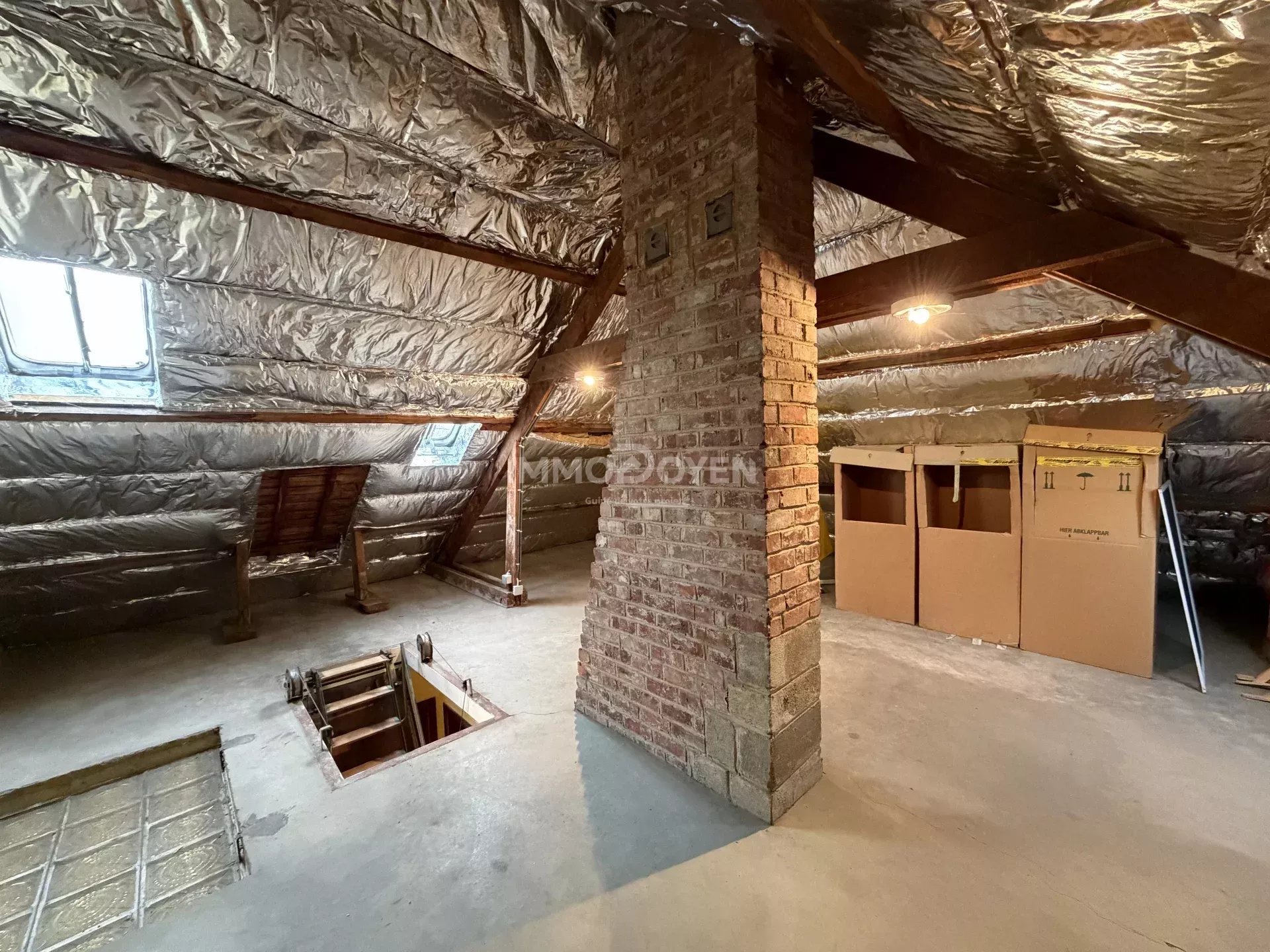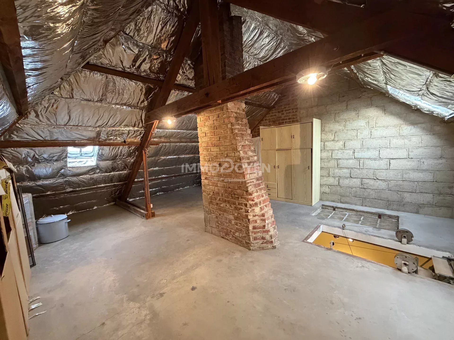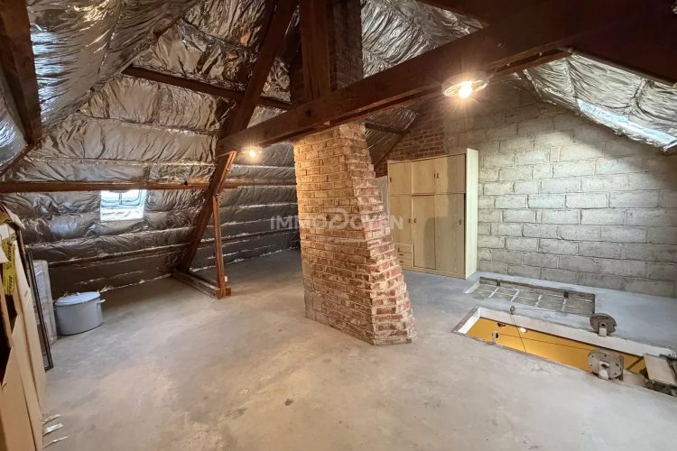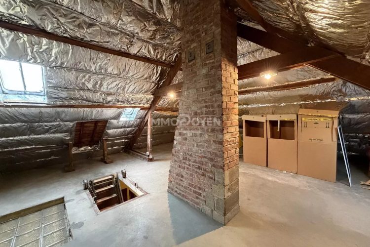 La maison dispose également d’un grenier accessible, mais aussi d’un véritable atout rare : des caves sous toute la superficie de la maison, offrant un espace de stockage particulièrement appréciable.