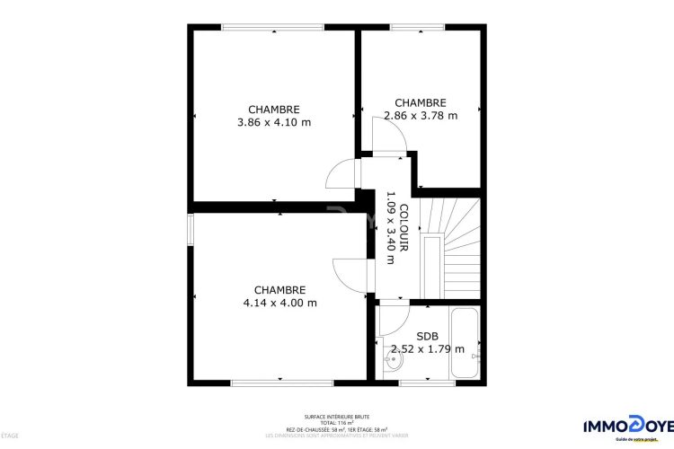 L’étage se compose de 3 chambres et d’une salle de bains.