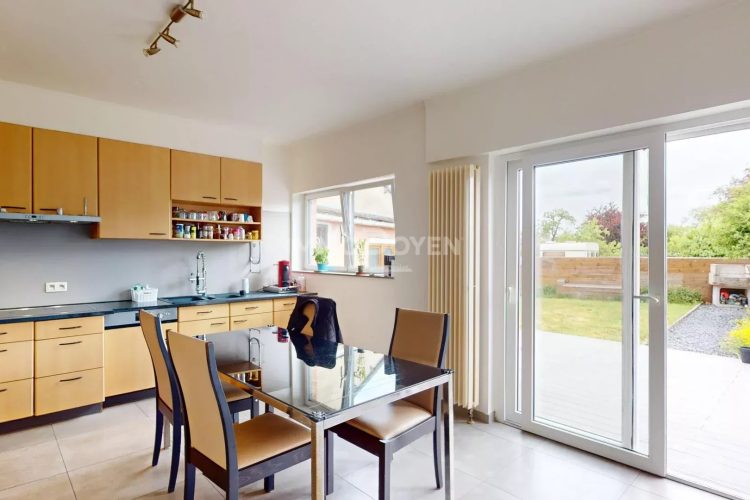 ImmoDoyen a le plaisir de vous présenter à Aubange rue Léon Thommes une superbe maison récemment rénovée offrant 200 m² habitables sur un terrain de 2,85 ares. Rénovée avec soin, cette habitation allie charme, confort moderne et fonctionnalité. Elle se compose de 4 chambres, dont une suite parentale avec sa propre salle de bain (douche, lavabo). Une seconde salle de bain, équipée d’une baignoire et d’un WC, est accessible depuis le hall de nuit, idéale pour une famille. Le rez-de-chaussée propose un spacieux séjour lumineux avec salon et salle à manger, agrémenté d’un agréable feu ouvert, ainsi qu’une grande cuisine équipée ouverte sur la terrasse et le jardin, parfaits pour les moments de détente. Un bureau avec accès direct au jardin offre un espace calme pour le télétravail ou une activité indépendante. Le grenier facilement accessible par des escalier, constitue un bel espace à aménager selon vos besoins (chambre, salle de jeux, bureau…). En sous-sol, vous disposez de caves pratiques pour le rangement et de deux garages. Située dans un quartier calme, à proximité des écoles, commerces et axes principaux, cette maison est prête à accueillir votre famille sans aucun travaux à prévoir.