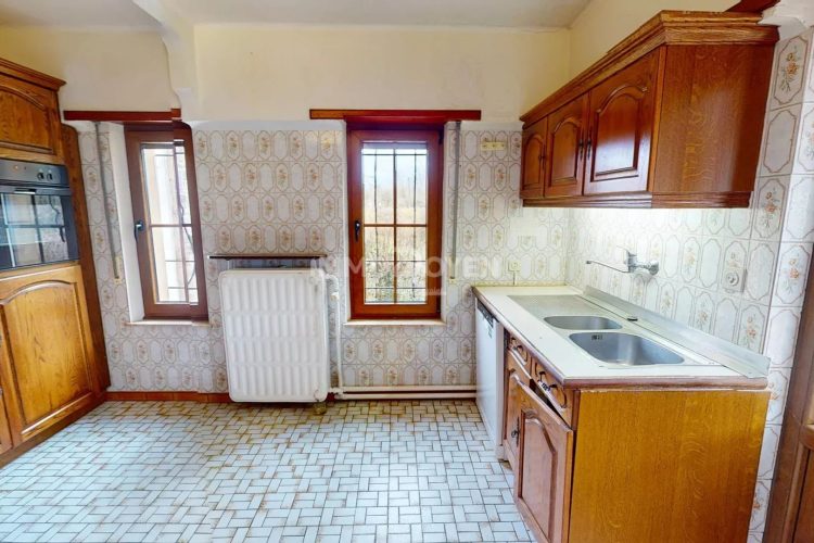 IMMO DOYEN vous présente cette maison 4 façades située à Longeau, Rue Schmit, offrant ± 150 m² habitables et un beau potentiel pour les amateurs d’espace, de confort et de volumes complémentaires. Dès l’entrée, vous découvrirez un hall accueillant avec toilette séparée, menant vers un vaste séjour baigné de lumière, agrémenté d’un feu ouvert, idéal pour créer une atmosphère chaleureuse et conviviale. La maison dispose également d’une salle à manger indépendante ainsi que d’une cuisine équipée fonctionnelle. L’espace nuit se compose de 3 chambres confortables et d’une salle de bain avec baignoire et toilette. Côté annexes, ce bien se distingue par ses nombreux atouts : caves, garage, pièce d’eau en sous-sol, véranda à l’arrière de la maison, ainsi qu’un grand grenier sur toute la superficie du bâtiment, avec une partie déjà aménagée, offrant encore de belles possibilités. Sur le côté de la maison, un garage supplémentaire de ± 80 m² vient compléter l’ensemble et pourra convenir parfaitement pour du stockage, un atelier, un petit entrepôt ou une activité indépendante. Une maison 4 façades aux beaux volumes, avec de nombreuses dépendances et un potentiel rare, idéale pour une famille ou pour toute personne recherchant un bien polyvalent à Longeau.PEB : G